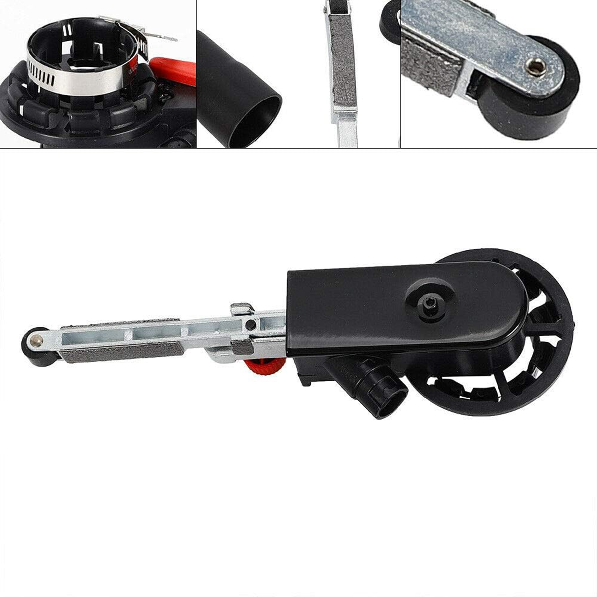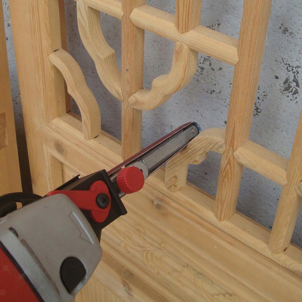 Може працювати з різними матеріалами, придатними для скла, дерева, металу, пластику тощо. Цей адаптер шліфувальної стрічки підходить для шліфувальних лез , шліфування ножицями, шліфування поручнів із нержавіючої сталі та зварювання металу.