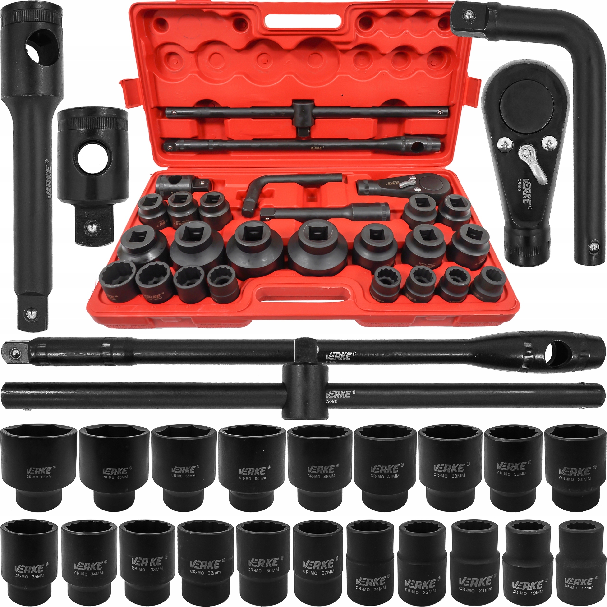 NASADKI UDAROWE 3/4 1 CAL ZESTAW NASADEK UDAROWYCH KLUCZY NASADOWYCH 17-65