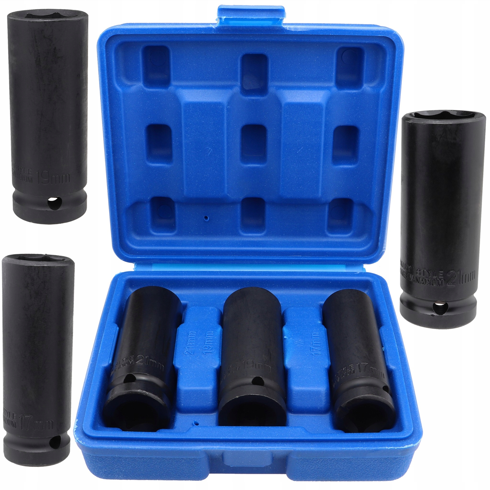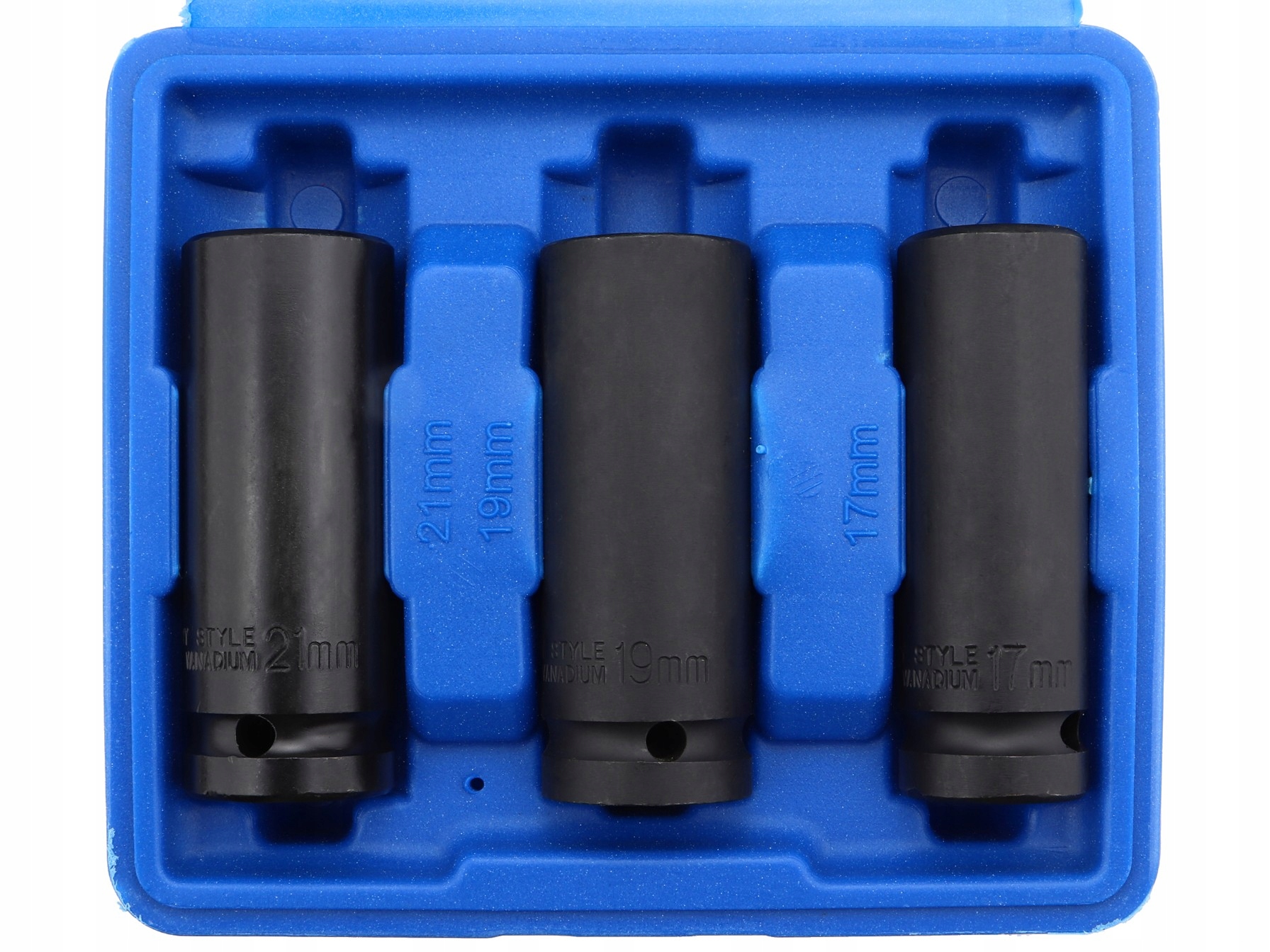 НАБІР ДОВГИХ УДАРНИХ ГОЛОВОК 3 1/2 ДЮЙМОВ У КОРОБЦІ 17 ММ / 19 ММ / 21 ММ