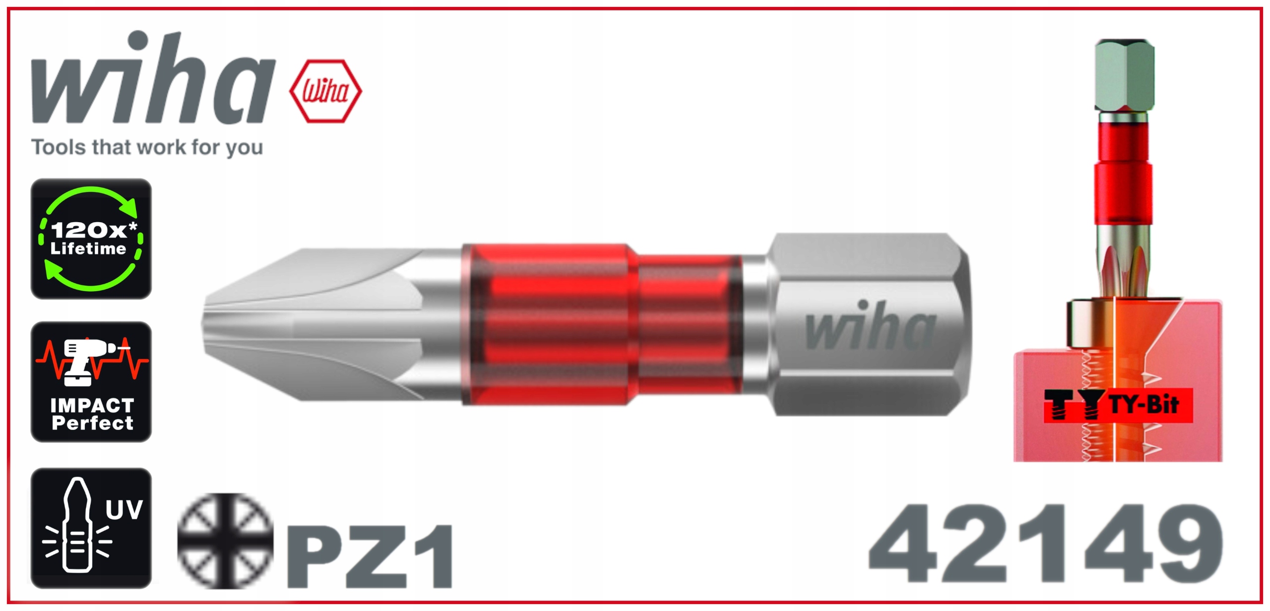 Під час купівлі насадок ви, напевно, задавалися питанням, для чого використовується Wiha, що робить процес вибору простішим завдяки революційній концепції насадок Wiha Ключову роль у виборі насадки відіграє форма головки гвинта. Універсальне рішення, тобто насадка "TY", використовується для всіх типів головок гвинтів, як Т-подібних, так і Y-подібних. тому це ідеальне рішення для гвинтових з'єднань з будь-яких матеріалів, завдяки чому насадка також підходить для ударних викруток, забезпечуючи в 120 разів довший термін служби в порівнянні зі стандартними насадками Wiha. ви можете швидко та легко знайти кольорові шматочки навіть у темряві за допомогою ультрафіолетової лампи. Це зменшує кількість втрачених шматочків, таким чином заощаджуючи непотрібні витрати.