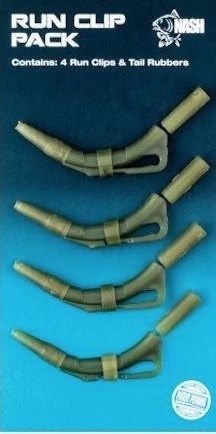 Унікальний вигнутий затискач фіксується в положенні під час натягу волосіні, але все ще дозволяє вільно проходити провисання шнура, що дозволяє легко регулювати поплавців для Zig Rigs вгору та вниз, а потім зафіксуйте їх на необхідній глибині. Затискачі Run Clips, які використовуються з наземними установками, забезпечують краще виявлення клювання та гарантують, що короп, засмоктавши оснастку, не зможе використати вагу грузила, щоб від’єднати оснастку. Вперше кінцева оснастка дозволяє вільно рухатися волосіні, дозволяючи звільнити вагу при натягу, що робить риболовлю на Zig Rig з поплавцем або без нього безпечнішою, ніж будь-коли. Кожна упаковка містить 4 затискачі, свинцеві стрічки, гумки для хвоста, що запобігають злутуванню, і буферні кульки, які акуратно тримають вертлюги розміру 8 або зиг-поплавки. Затискачі Run Clips доступні в кольорах Weed Green і Silt.