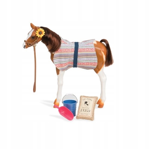 Іграшкова конячка породи PINTO PASO FINO з блискучою гривою може стати доповненням до гри з ляльками Our Generation. Гарна ідея подарунка для дитини 5 років.