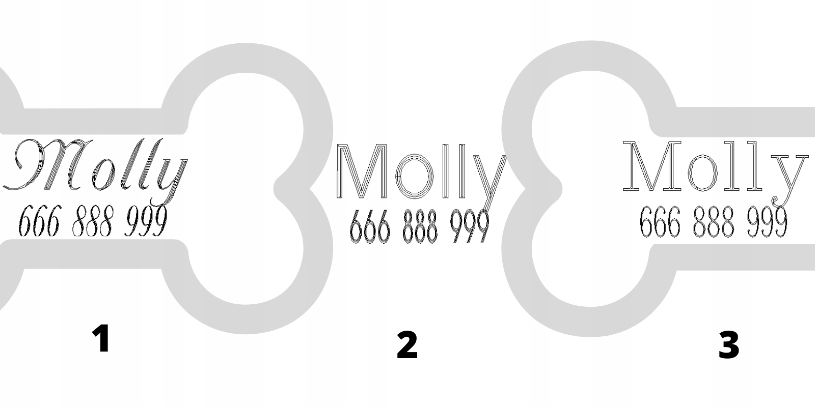 - Нижче ви можете перевірити, як виглядають окремі літери зВЕЛИКОЇ та МАЛЕНЬКОЇ версій - ввівши ім'я собаки, ви вирішуєте, які саме ми будемо використовувати для гравіювання.