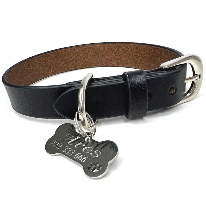 Замовте для свого улюбленця чудовий нашийник з натуральної шкіри чорного кольору з підвіскою з іменем!