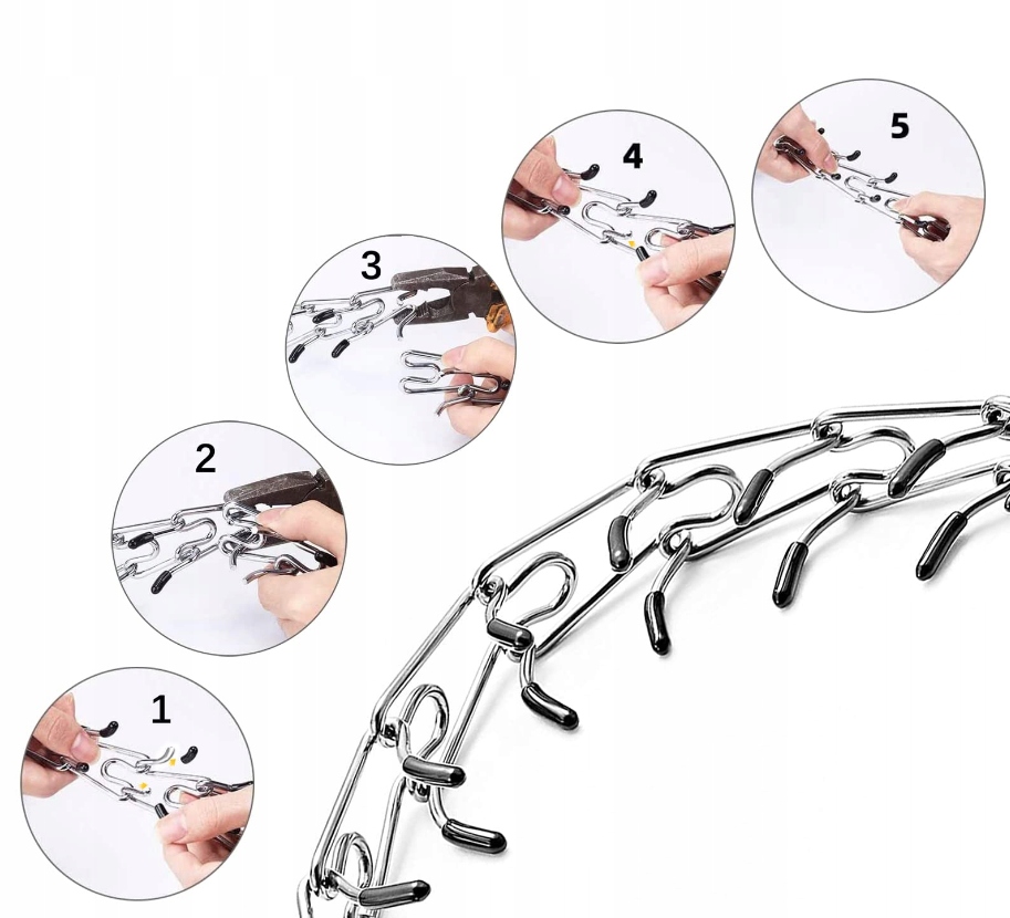 【РЕГУЛЬОВАНИЙ РОЗМІР】 Окружність нашийника для дресирування собак можна регулювати, підходить для маленьких, середніх і великих собак. Ви можете додавати або знімати окремі ланцюжки на нашийнику з дроселем, щоб за потреби відрегулювати його навколо шиї. Налаштуйте такі інструменти, як плоскогубці.