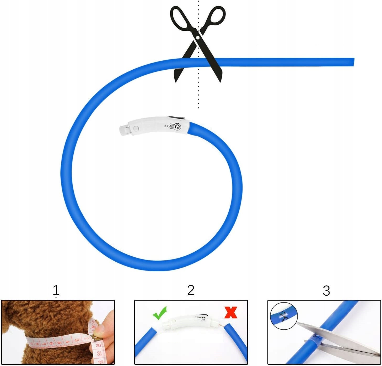 Як вкоротити комір? зніміть силіконову кришку зі сторони, позначеної ножицями, і обріжте її до потрібної довжини, а потім надіньте її на блок живлення.