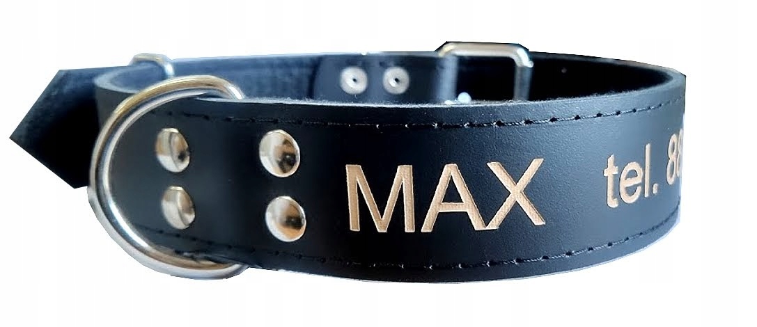 НАШИЙНИК З ІМ'ЯМ СОБАКИ. ЧОРНА ШКІРА, ГРАВЕР 47-61