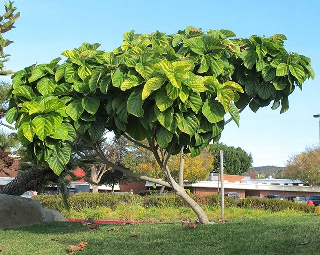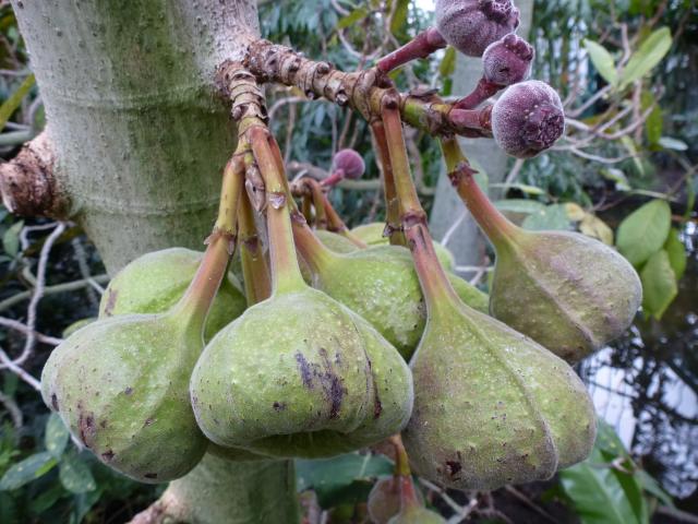 Це багаторічний вічнозелений швидкозростаючий чагарник або невелике деревце. Листя яйцевидної форми дуже великі (30-40 см). Спочатку вони червоні, потім зелені. Плоди грушоподібної форми, червонувато-коричневі, звисають на ніжках довжиною 2,5 см або довше. Плоди з'являються на тонких гілках, що виходять зі стовбура або коренів. Плоди їстівні, використовуються для приготування джемів і соків. У нашому кліматі його вирощують як горщикову рослину, яка зимує в кімнатних умовах. В упаковці 5 насінин.