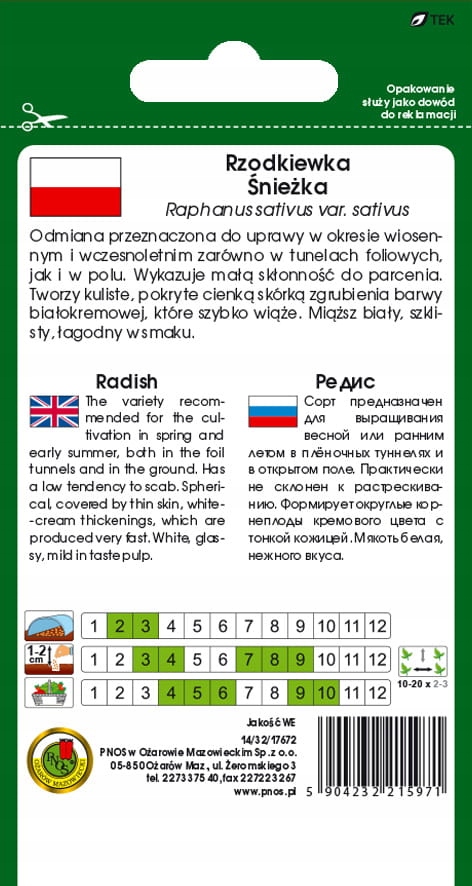 Оплачивая «НАСІННЯ РЕДИСИ СНОУ БОЛ 10г», вы можете быть уверены, что данное изделие из каталога «Овощи» будет доставлено из Польши и проверено на целостность. В цене товара, указанной на сайте, учтена доставка из Польши. Внимание!!! Товары для Евросоюза, согласно законодательству стран Евросоюза, могут отличаться упаковкой или наполнением.