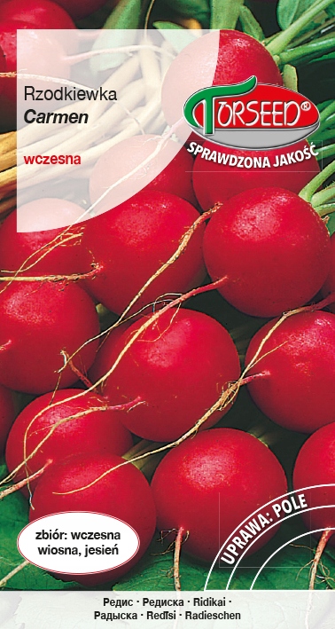 Редька Кармен – це різновид дрібних кулястих коренеплодів інтенсивного червоного кольору. Це сорт, який швидко росте, з періодом вегетації приблизно 35 днів. це означає, що за короткий час ви зможете насолоджуватися свіжою та хрусткою редькою прямо з грядки.