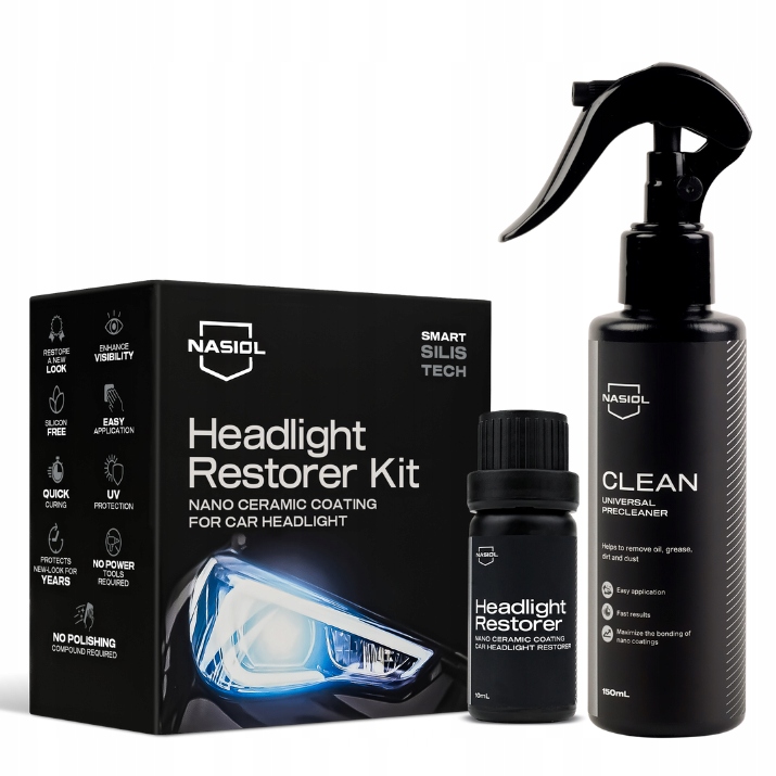 Набір реставраторів фари Nasool Повний набір для реконструкції фари + Nasiol Clean 150Ml Dicelid (огляд)