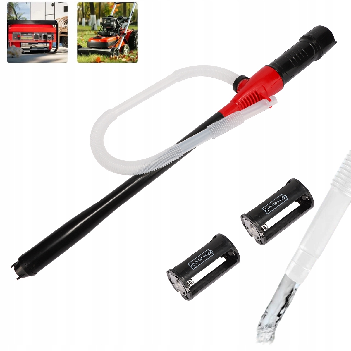 Матеріал: ABS; Колір: чорно-червоний; Розмір - деталі на фото. Діаметр всмоктуючої труби: прибл. 33 мм. Підходить для більшості паливних банок (зверніть увагу, що діаметр каністри, з якої забирається рідина, має бути більше 33 мм). Довжина труби прибл. 40,5 см і довжина шланга прибл. 62,5 см, підходить для паливних баків об’ємом від 3 до 5 галонів, бочок для масла, бочок тощо. Підходить для більшості надзвичайних ситуацій.