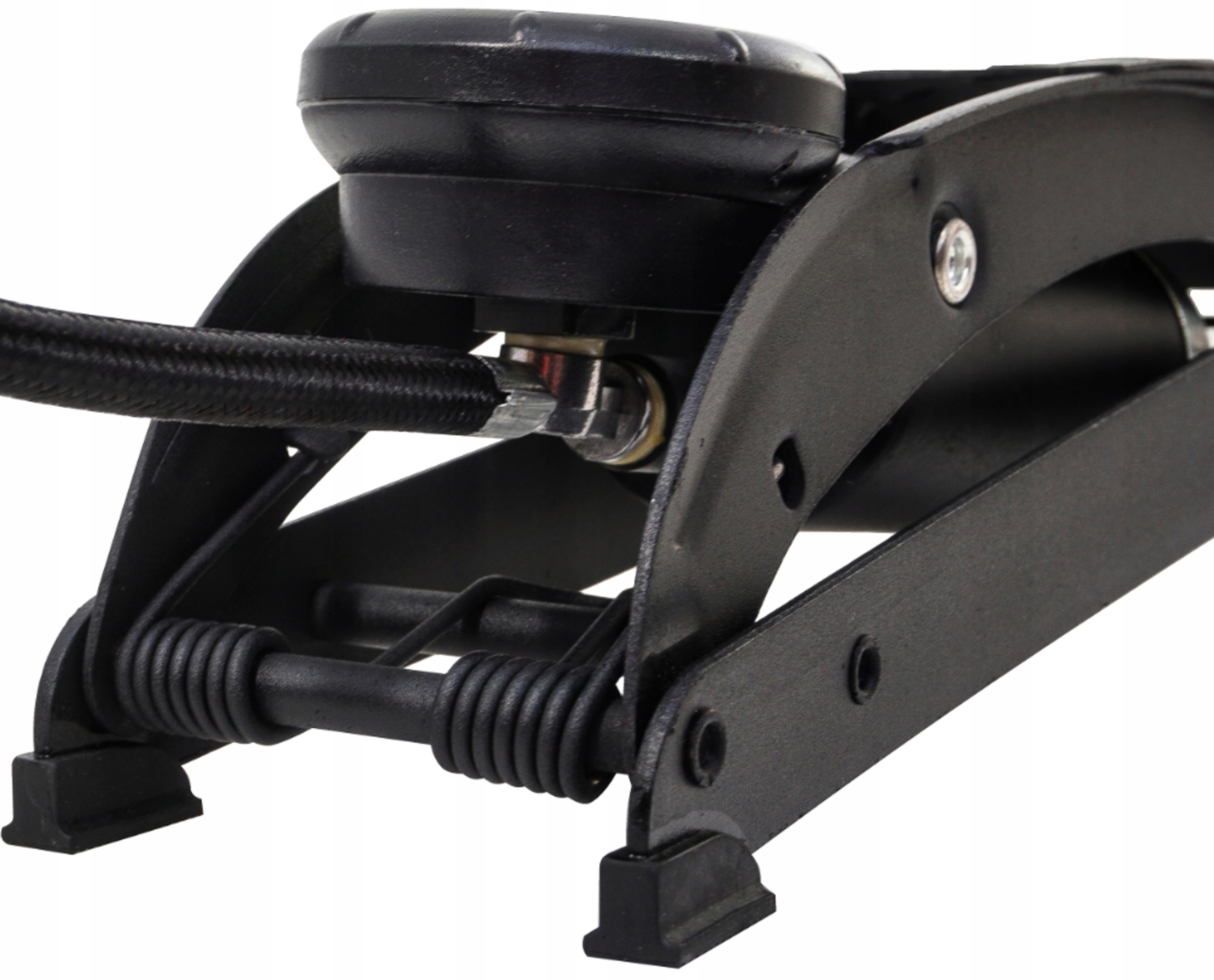 Однопоршневий ножний насос VERKE. Насос міцної конструкції, виготовлений з тисненого лакованого сталевого листа товщиною 3 мм. Педаль повністю покрита гумою для кращого зчеплення. Зручний для читання манометр, який показує бар (0-7) і PSI (0-100). Міцний і гнучкий шланг. Два адаптери в комплекті. Ідеально підходить для професійних послуг і домашніх господарств.