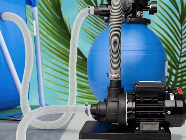 Фільтр, встановлений для води в басейні, складається з плавального насоса та піщаного фільтру, з 7-ти сторонним клапаном, встановленим зверху та насосом ротора. містить чіткий датчик тиску.