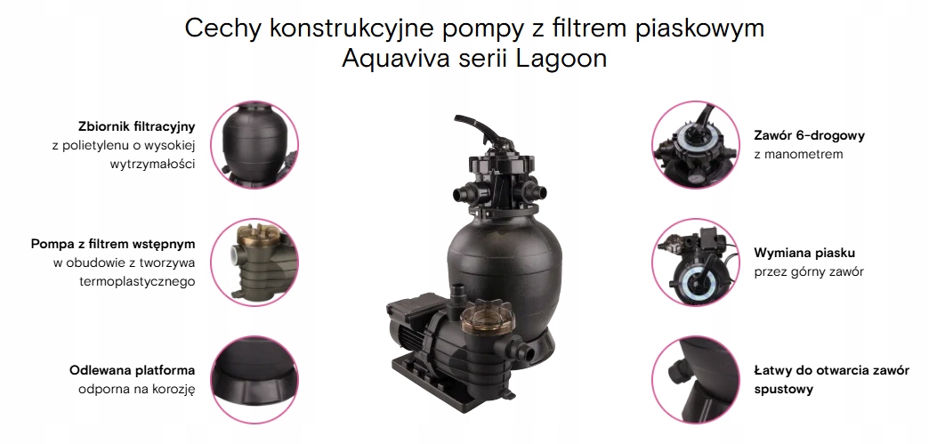 - Фільтр: високоміцний поліетилен, стійкий до механічних пошкоджень і впливу хімікатів для басейнів.