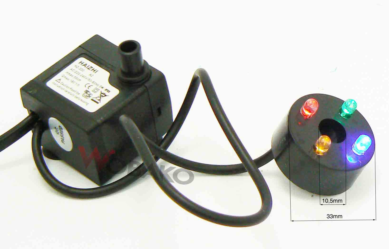 • разом із насосом вбудоване світлодіодне кільце з отвором до якого можна підвести шланг подачі води від насоса і встановити на нього освітлення (шланг не входить в комплект)