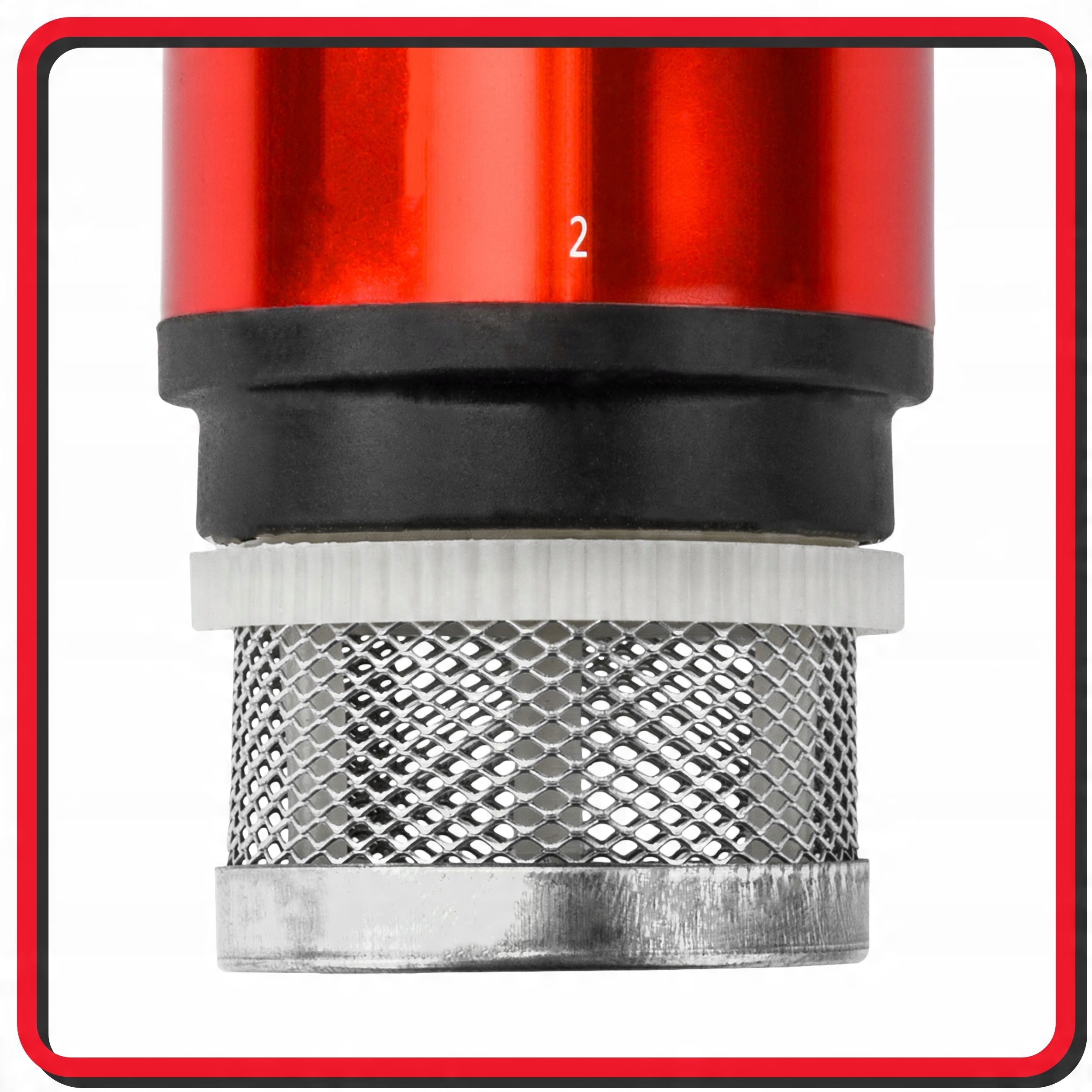 Прилад оснащений знімною головкою з фільтром, яка гарантує відсутність більших домішок в рідину, що перекачується. Це рішення захищає як насос, так і резервуари, що використовуються, забезпечуючи чистоту та безпечну роботу.