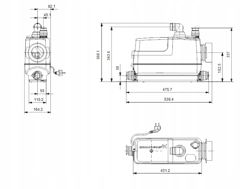 Підйомна установка GRUNDFOS, спеціально розроблена для настінних унітазів SOLOLIFT2 CWC-3 0,62 кВт Q=149 л/хв 240 В