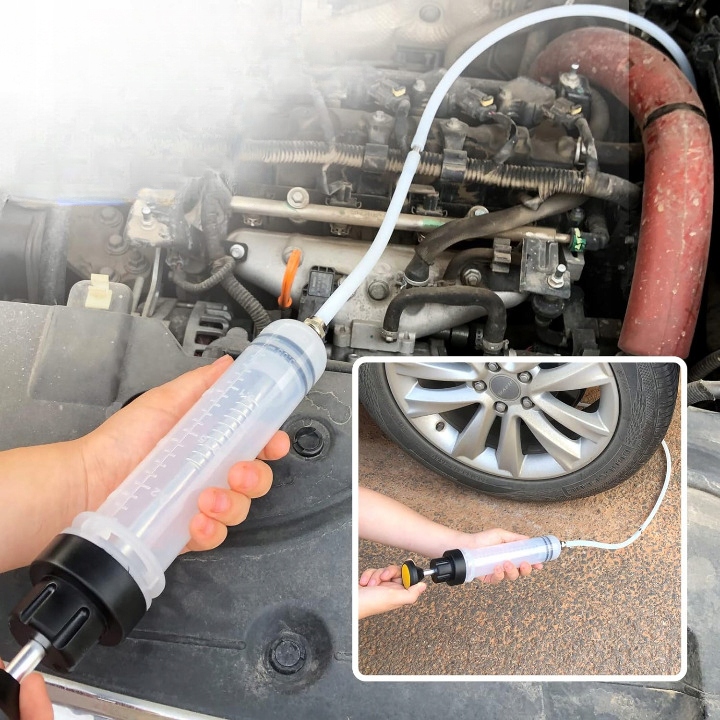 Шприц дозволяє просто розпорошувати олію ручним насосом, щоб висмоктувати рідину. Завдяки функції диференціалу всмоктування ви можете швидко і легко витягнути і вилити рідину в два напрямки. Всмоктувальний насос ідеально підходить для спорожнення або заповнення основних танків та інших танків.