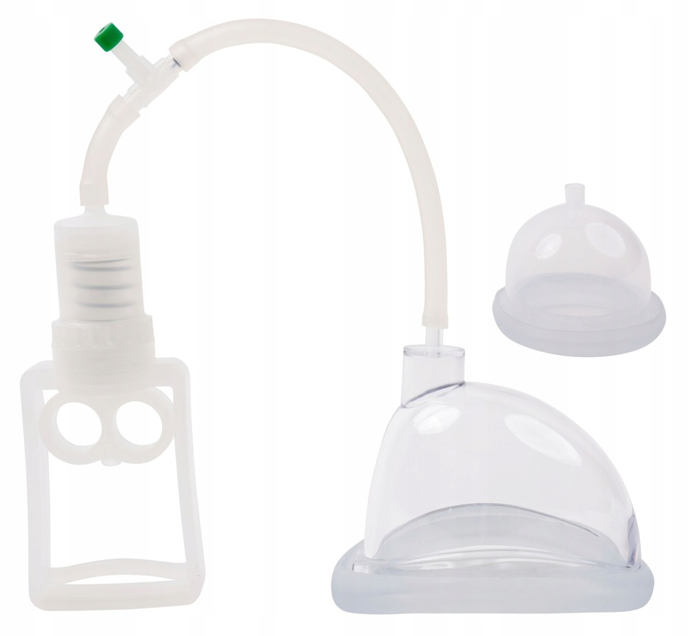 Прозора вагінальна присоска ергономічної форми (8,5 x 12 x 10 см) і менший круглий відсос чашка (6 см заввишки, Ø 60-70 мм) і насос з випускним клапаном (скидання тиску) і шлангом (30 см) і 2 ущільнювачами, що відповідають присоскам.