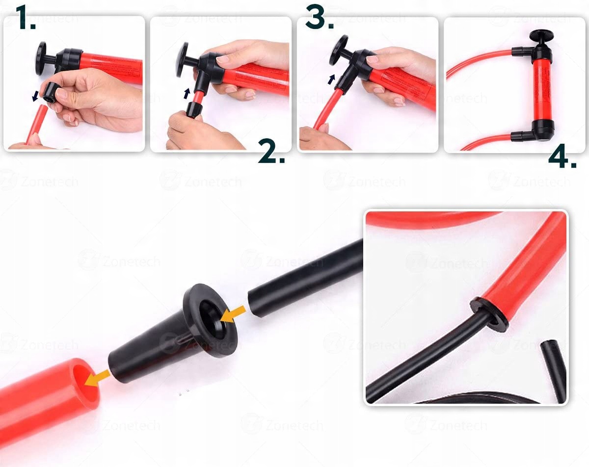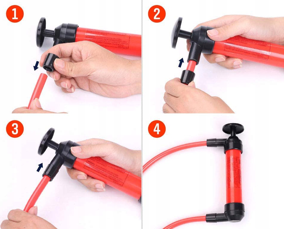 - Дуже простий у використанні! Просто занурте один кінець рідинного шланга в рідину, вставте відвідний шланг в ємність і почніть відкачування.