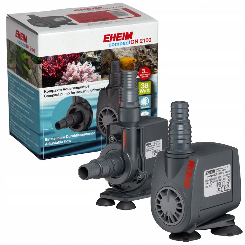 Насоси серії EHEIM COMPACT+ підвищеної потужності призначені для використання в акваріумі та поза ним (в комплекті є спеціальні шлангові з’єднання). Насоси регулюються, щоб їх потік можна було регулювати відповідно до розміру акваріума. Попередній фільтр з грубими сітками вловлює найбільший бруд і захищає насос від засмічення. Насоси дуже тихі, споживають мало енергії та призначені для прісної та морської води.