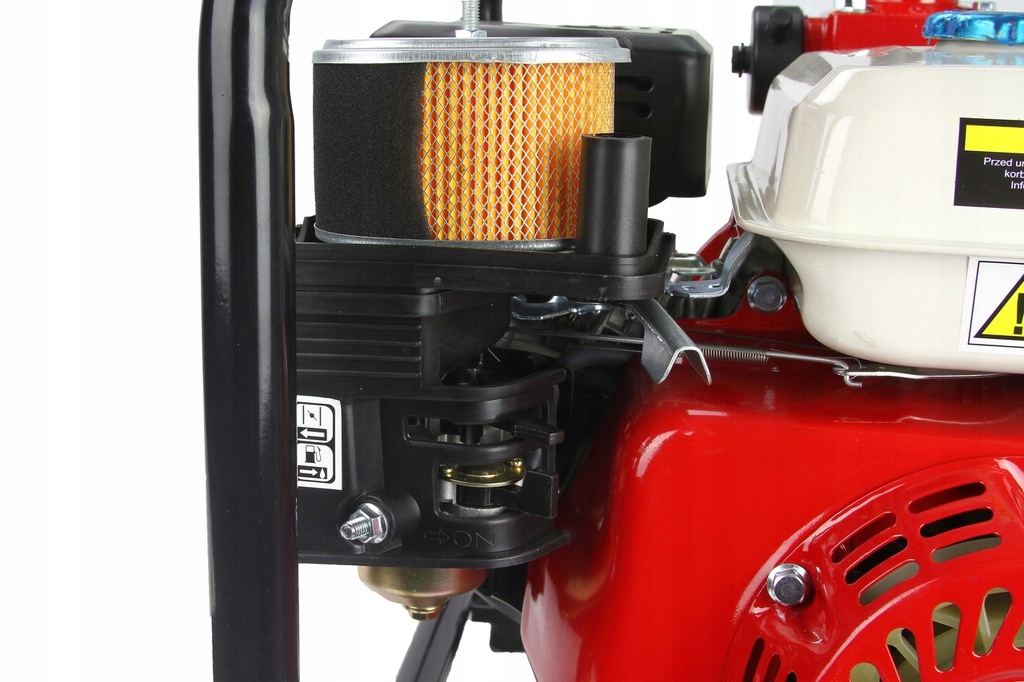 Мотопомпа оснащена важелями регулювання обертів двигуна, завдяки яким ми можемо регулювати тиск води на виході за потреби.