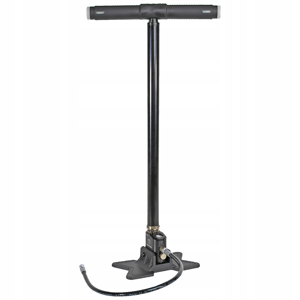 Безпека - прилад оснащений точним манометром зі шкалою від 0 до 250 бар і вентиляційним клапаном, що дозволяє заповніть циліндр пневматичної зброї та безпечно від'єднайте один заповнений картридж насоса. Завжди послаблюйте напірний клапан, перш ніж від'єднати насос від картриджа. Невиконання процедури послаблення може призвести до пошкодження ущільнень. Стабільна та регульована основа насоса забезпечує безпечне використання насоса під час накачування.