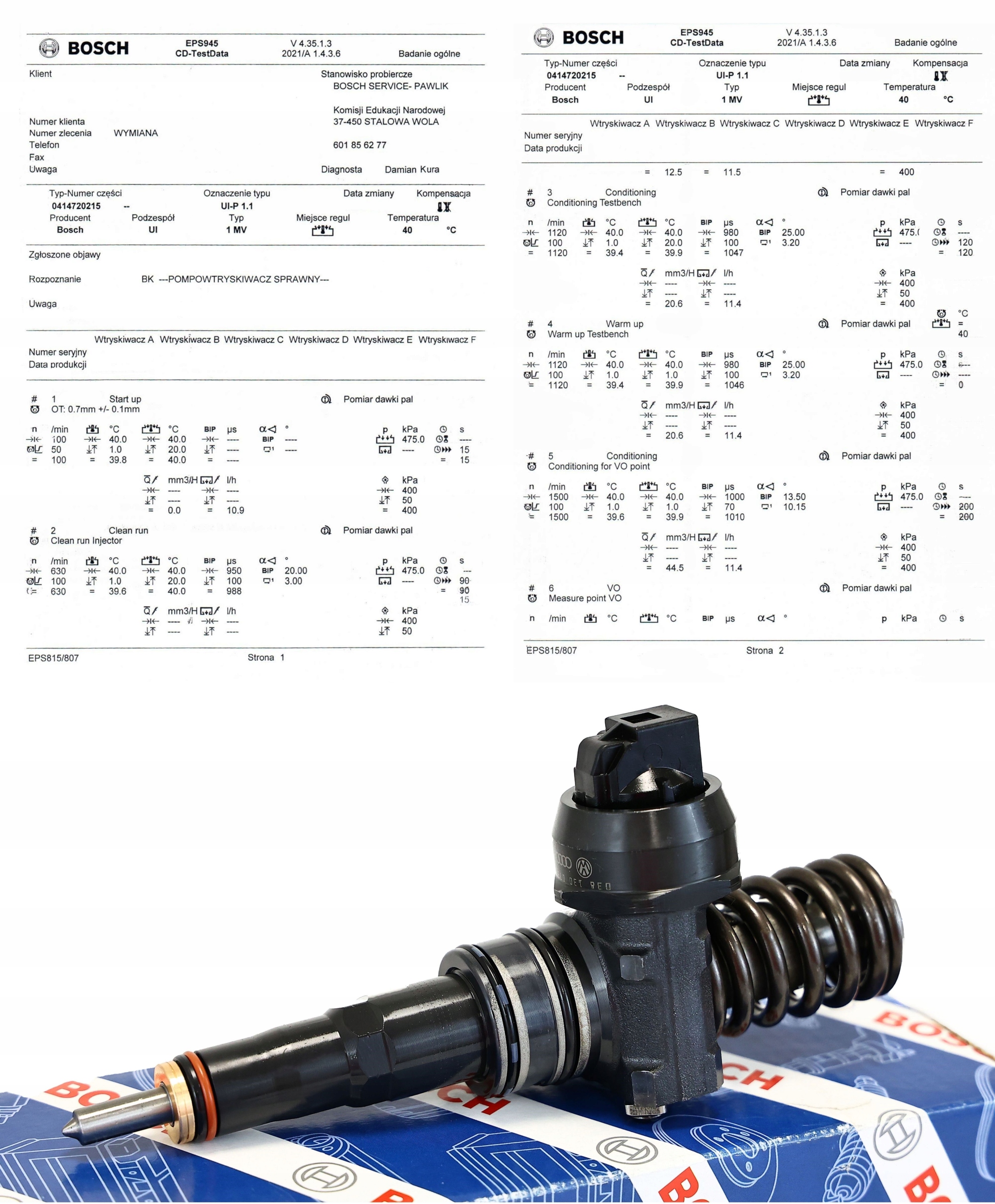- роздрук параметрів (протокол) з тестового стенду Bosch EPS 815 з CAMBOX
