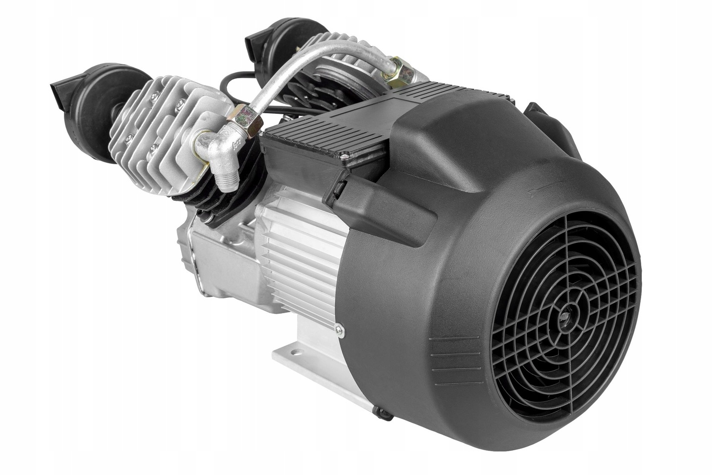 Пропонований набір оснащений компресором з двома циліндрами V-образного розташування. Це означає, що в пристрої використовується компресор, оснащений двома поршнями, кожен в окремому циліндрі у формі V. Це рішення дозволяє досягти максимальної високої ефективності від відносно невеликого компресора. Компресор оснащений загартованими чавунними циліндрами, що забезпечує тривалий термін служби та ефективне охолодження компресора.