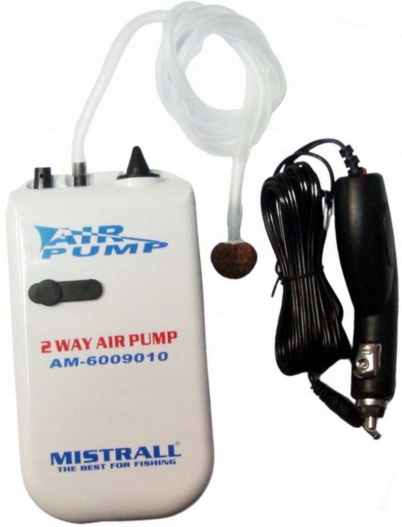 Практичний і зручний пристрій для насичення води киснем під час транспортування живої риби. Насос має автомобільний зарядний пристрій.