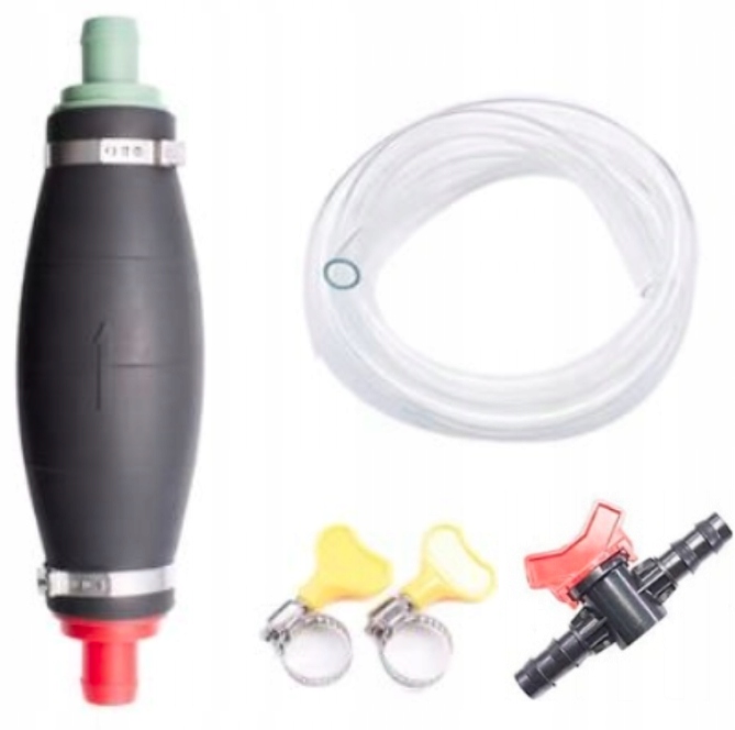 - насос продуктивністю 10л/хв з індикацією напрямок потоку рідини та зворотні клапани для запобігання зворотного потоку палива. - червоний клапан на стороні всмоктування та зелений на стороні нагнітання. Завдяки своїм властивостям він широко використовується в автомобільній промисловості. Прозорість шланга забезпечує постійний оптичний контроль матеріалу, що тече, що дозволяє легко помітити будь-яке забруднення