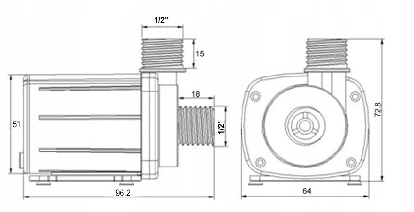 - має два з'єднання: всмоктування та вихід із типовою різьбою 1/2 дюйма