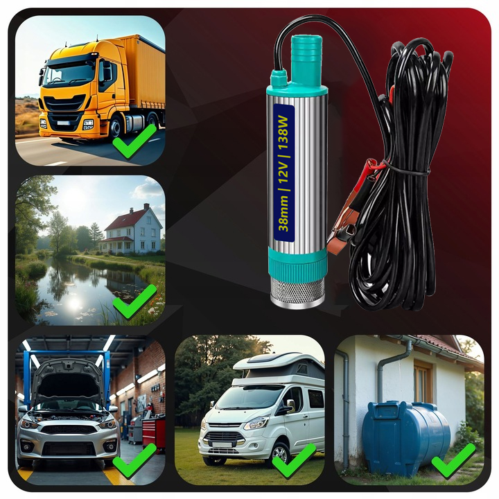 Автомобільний занурювальний насос з нержавіючої сталі 12 В, 38 мм, 30 л/хв, дизельний насос, водяний насос 138 Вт, кабель 5 м