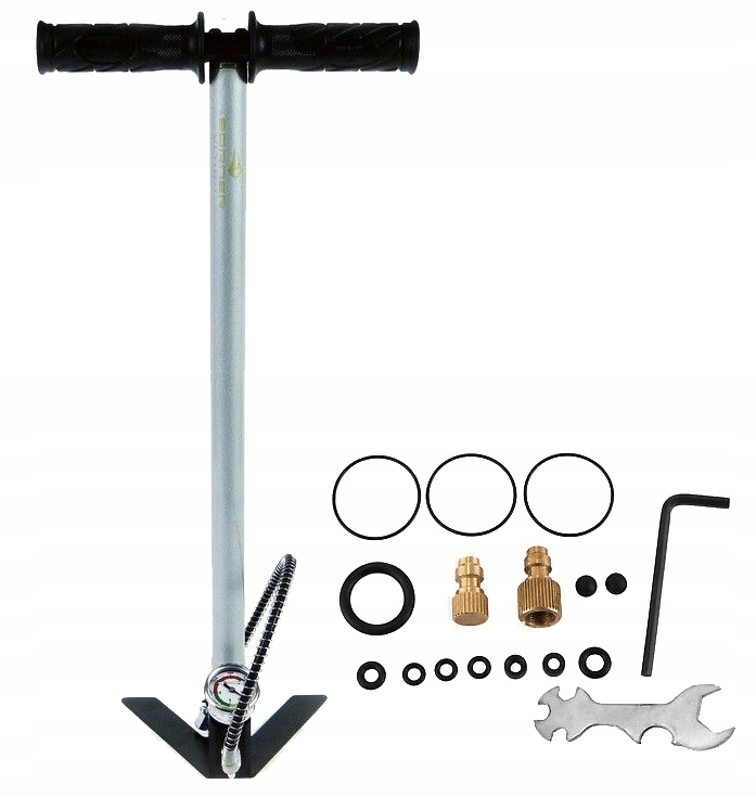 Насос постачається з наконечником заливного ніпеля (наприклад, для пневматичних гвинтівок Crosman Sillhouette 1701P) і комплектом запасних ущільнень.
