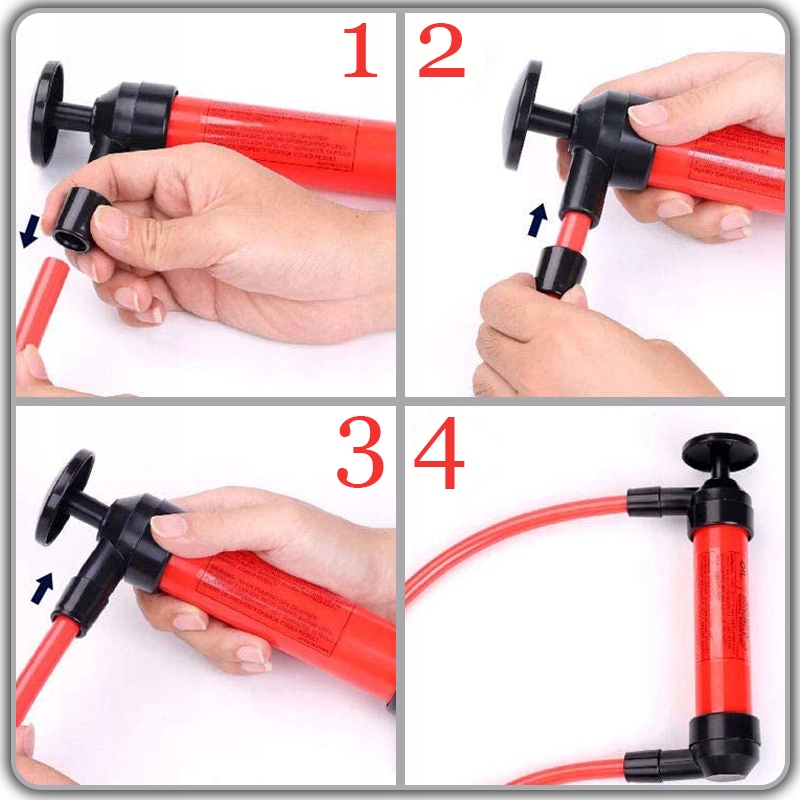 ⭐ Відкачування відпрацьованого масла: щоб відкачати масло з двигуна або коробки передач, вставте елемент у вхід насоса, потім під’єднайте до нього шланг для зливу масла та закріпіть його хомутом. Під’єднайте шланг до вихідного отвору насоса та надіньте хомут. Тонкий шланг потрібно помістити в двигун, а вихідний шланг — у контейнер для відпрацьованої оливи.