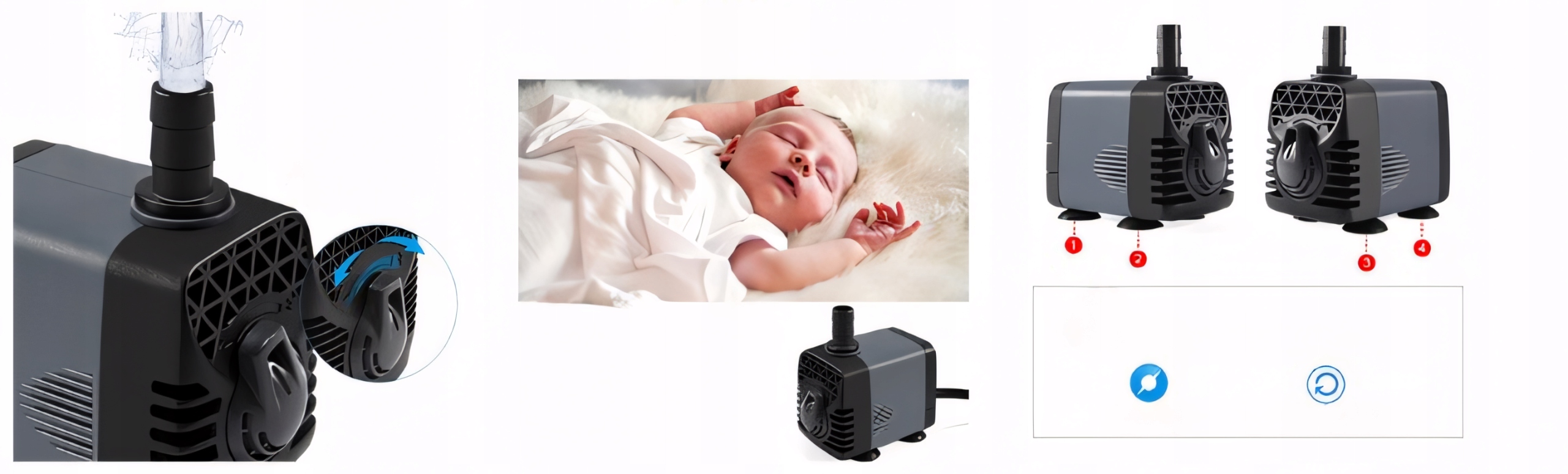 Завдяки своїй універсальній конструкції насос ідеально підходить для акваріумів, ставків, поїлок для тварин і гідропонних систем.