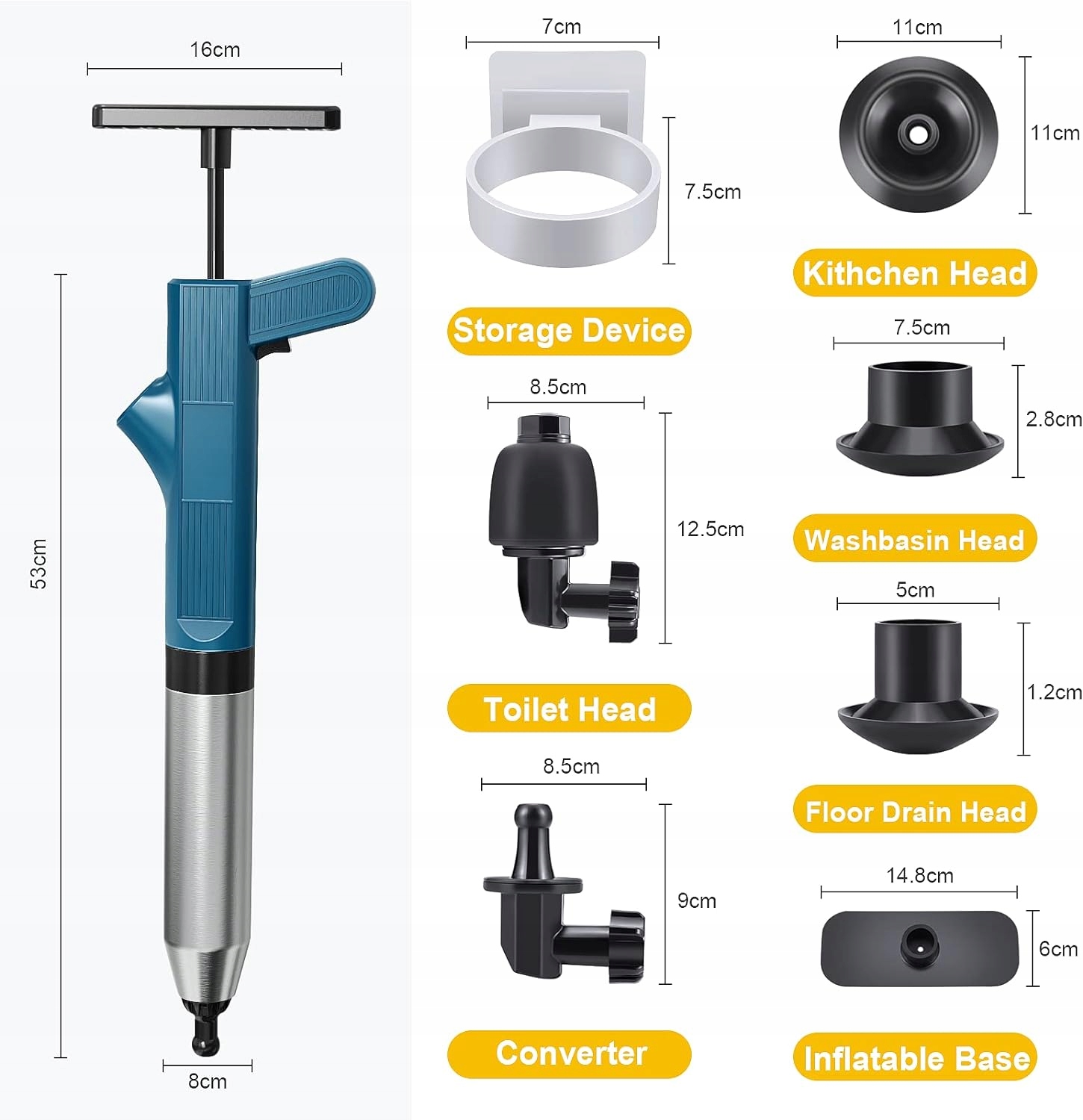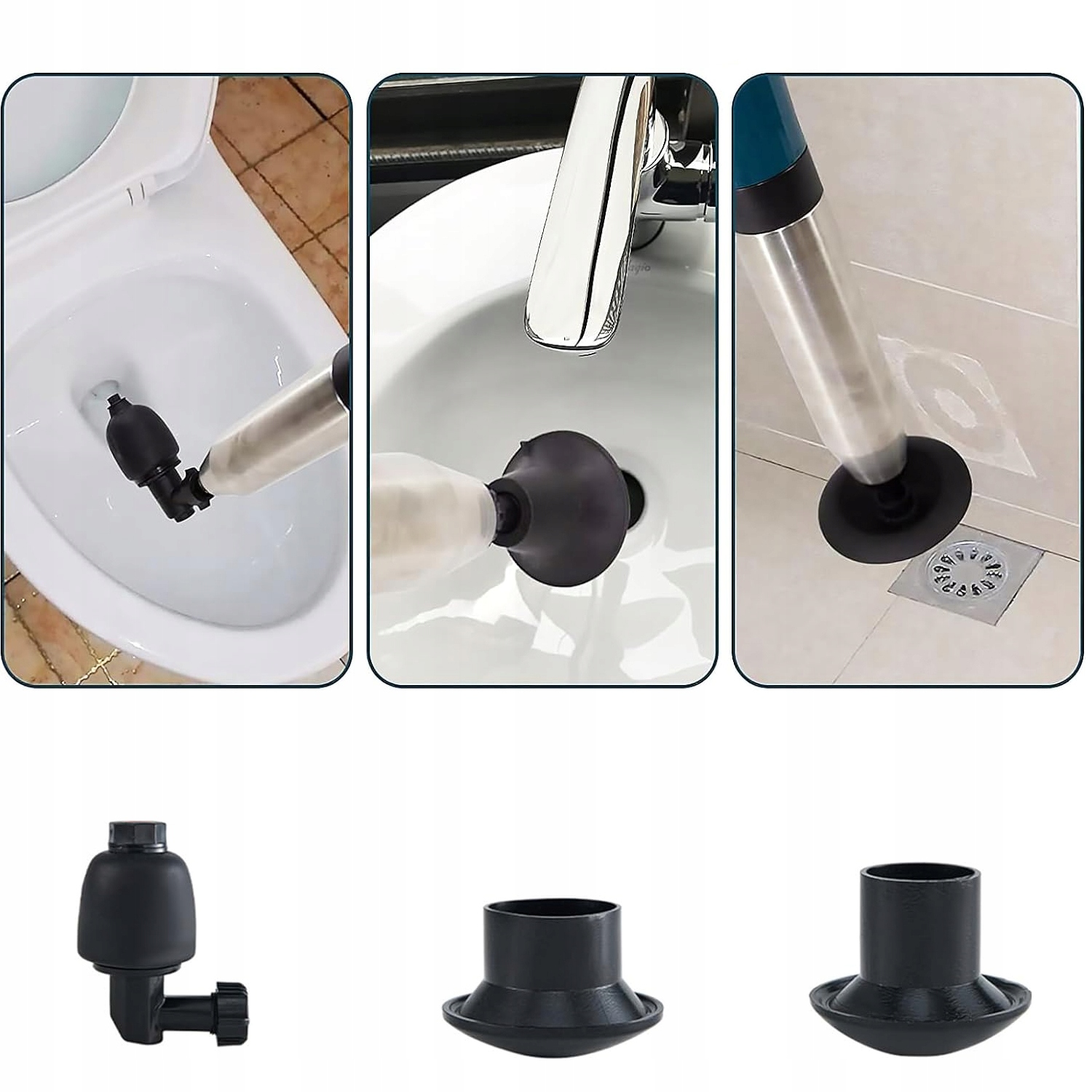 🚽 【Широке використання】 наш поршневий тиск туалет оснащений 4 різними головами, придатними для туалету, ванною, кухонною раковиною, умивальницею, відливу підлоги, ви можете змінити голову залежно від фікса Ідеально підходить для всіх видів емболії, спричинених сміттям, волоссям, одягом тощо.