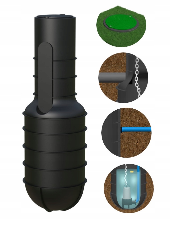 - це пристрій, призначений для збору та накачування очищеної, сирої та дощової води та технологічної води. Насосна свердловина ідеально підходить для використання в каналізаційних системах, де потрібна додаткова насосна станція для транспортування рідини на більш високий рівень або для подальшого очищення. Це особливо корисно у випадках, коли гравітаційне утилізацію стічних вод неможливий або достатній.