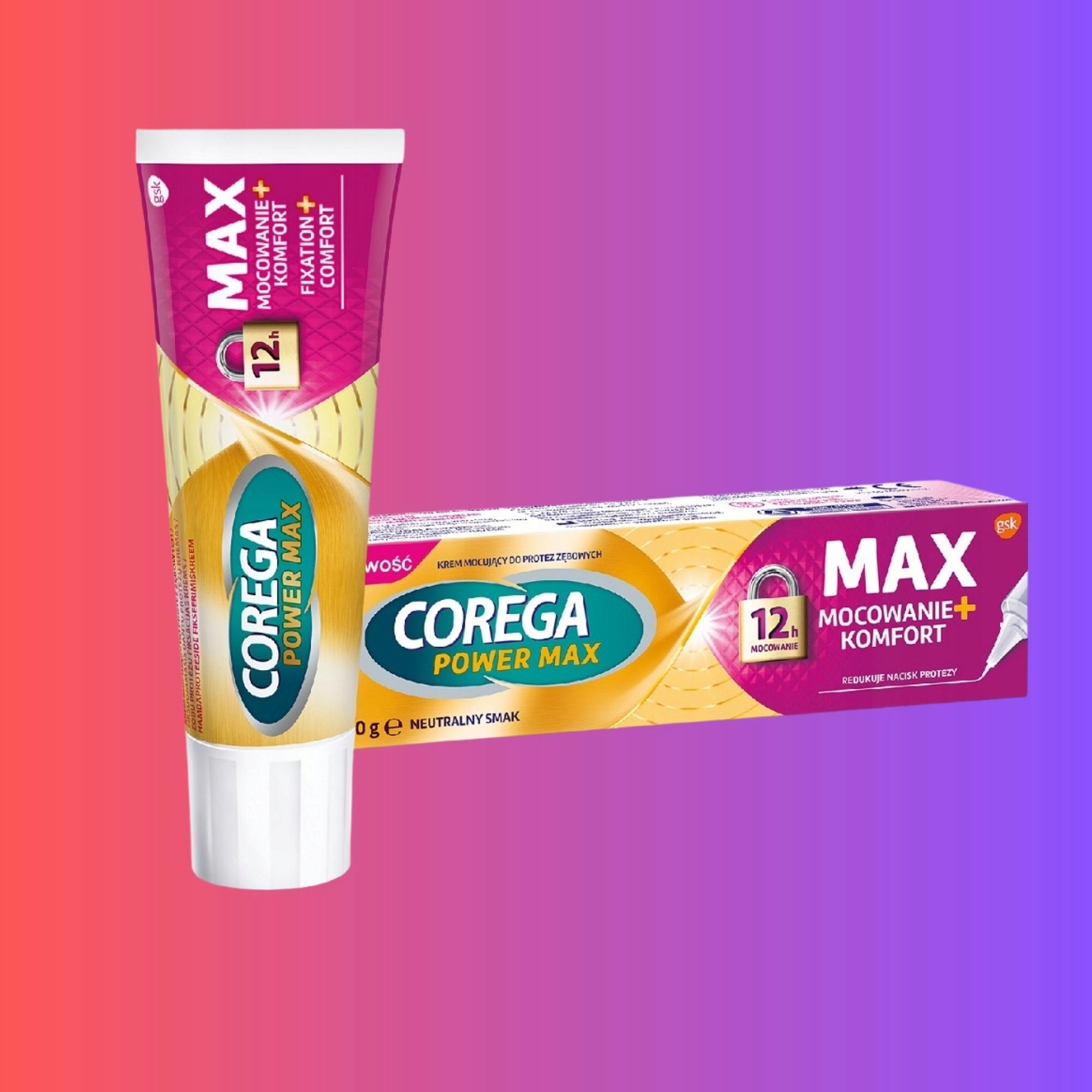 Corega Power Max Mounting + Komfort — фіксуючий крем для зубних протезів, який не містить ароматизаторів і штучних барвників і має нейтральний смак. Тюбик має точний аплікатор, що полегшує використання засобу. Зовнішня упаковка виготовлена з переробленого картону та може бути перероблена.