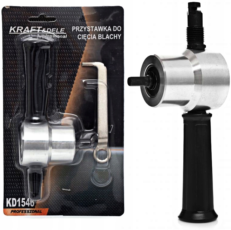 Насадка для свердла, яка використовується для різання листового металу. Дуже простий дизайн і легкість у використанні. Насадка працює за принципом відривача листового металу, коли спеціальне лезо, що приводиться в дію обертанням свердла, здійснює рух вперед-назад, розриваючи листовий метал. Корпус кріплення виготовлений з алюмінію, механізм із загартованої сталі. Шестигранний приводний штифт.