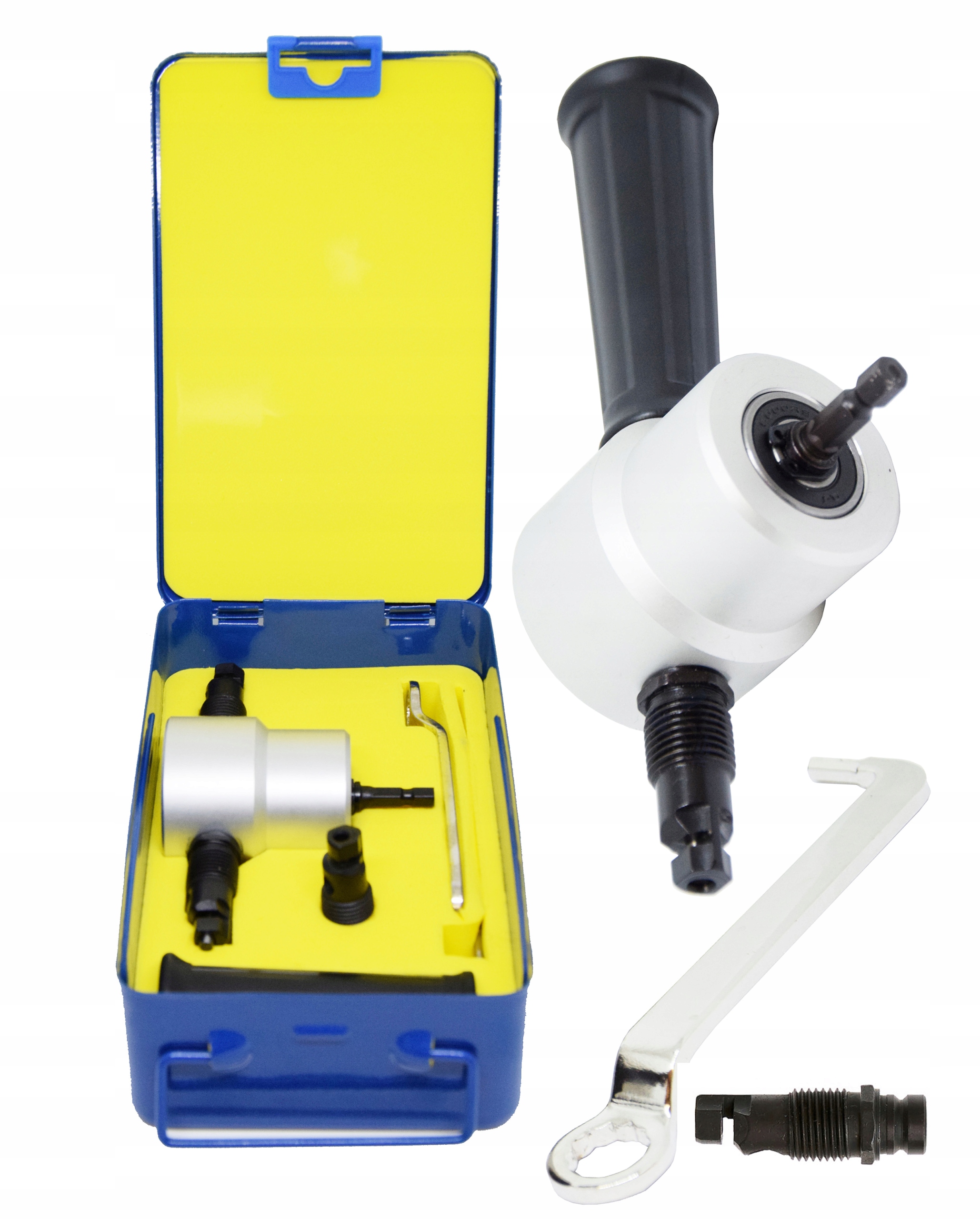 - накладка - ножиці для різання листового металу кріпиться на стандартні свердла. Керування ним дуже просте, що робить його придатним не лише для професійних, а й для аматорських застосувань - наприклад, у домашній майстерні.