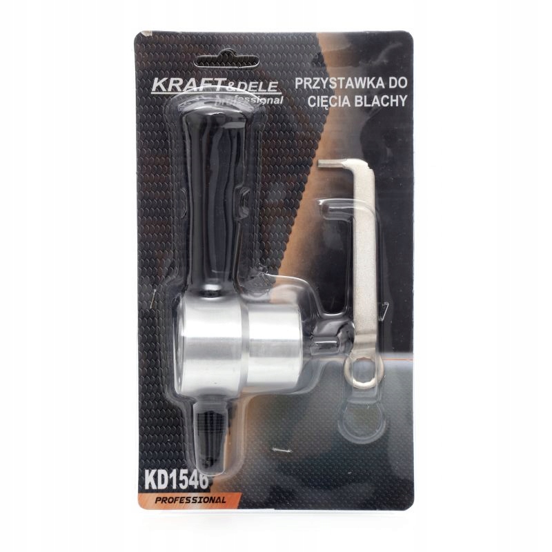 Насадка для свердла, яка використовується для різання листового металу. Дуже простий дизайн і легкість у використанні. Насадка працює за принципом відривача листового металу, коли спеціальне лезо, що приводиться в дію обертанням свердла, здійснює рух вперед-назад, розриваючи листовий метал. Корпус кріплення виготовлений з алюмінію, механізм із загартованої сталі. Шестигранний приводний штифт.