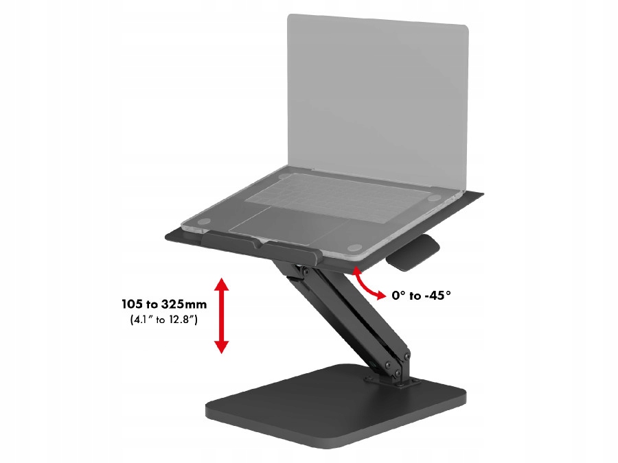 З механізмом газової пружини це ідеальне рішення для людей, які хочуть покращити ергономіку свого робочого місця. Він дозволяє плавно регулювати висоту екрану від 105 до 325 мм, що дозволяє легко перемикатися між положеннями сидячи і стоячи. Завдяки цьому ви зможете зменшити навантаження на хребет, покращити поставу та підвищити комфорт під час довгих годин, проведених за комп’ютером.