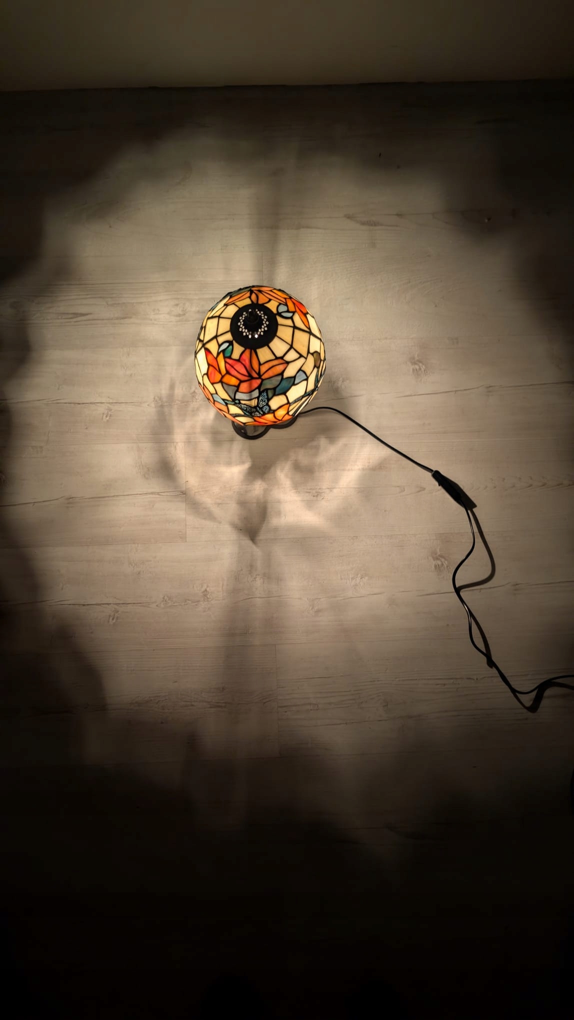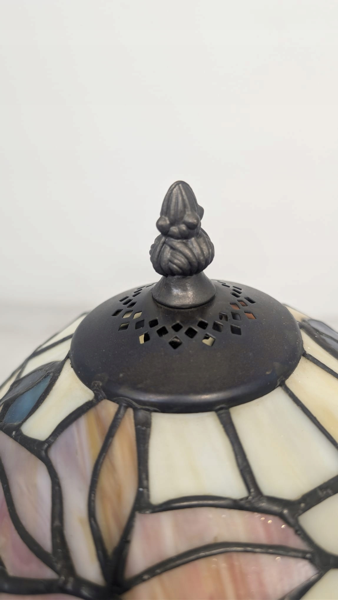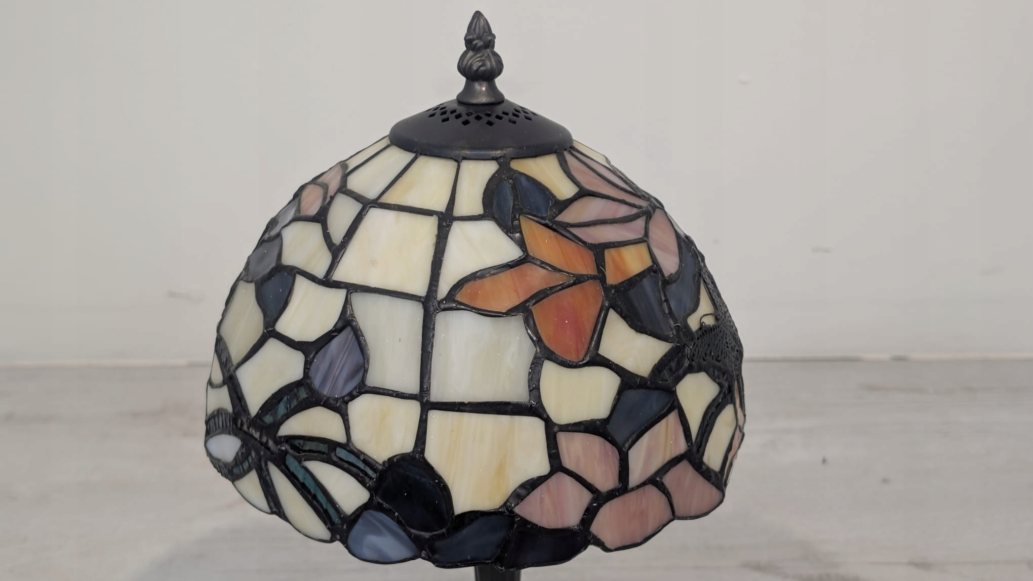 Стильна настільна лампа в стилі Тіффані з мотивом метелика. Виготовлений з кольорового вітража, створює тепле та атмосферне освітлення. Унікальна прикраса, яка додасть шарму будь-якому інтер’єру.