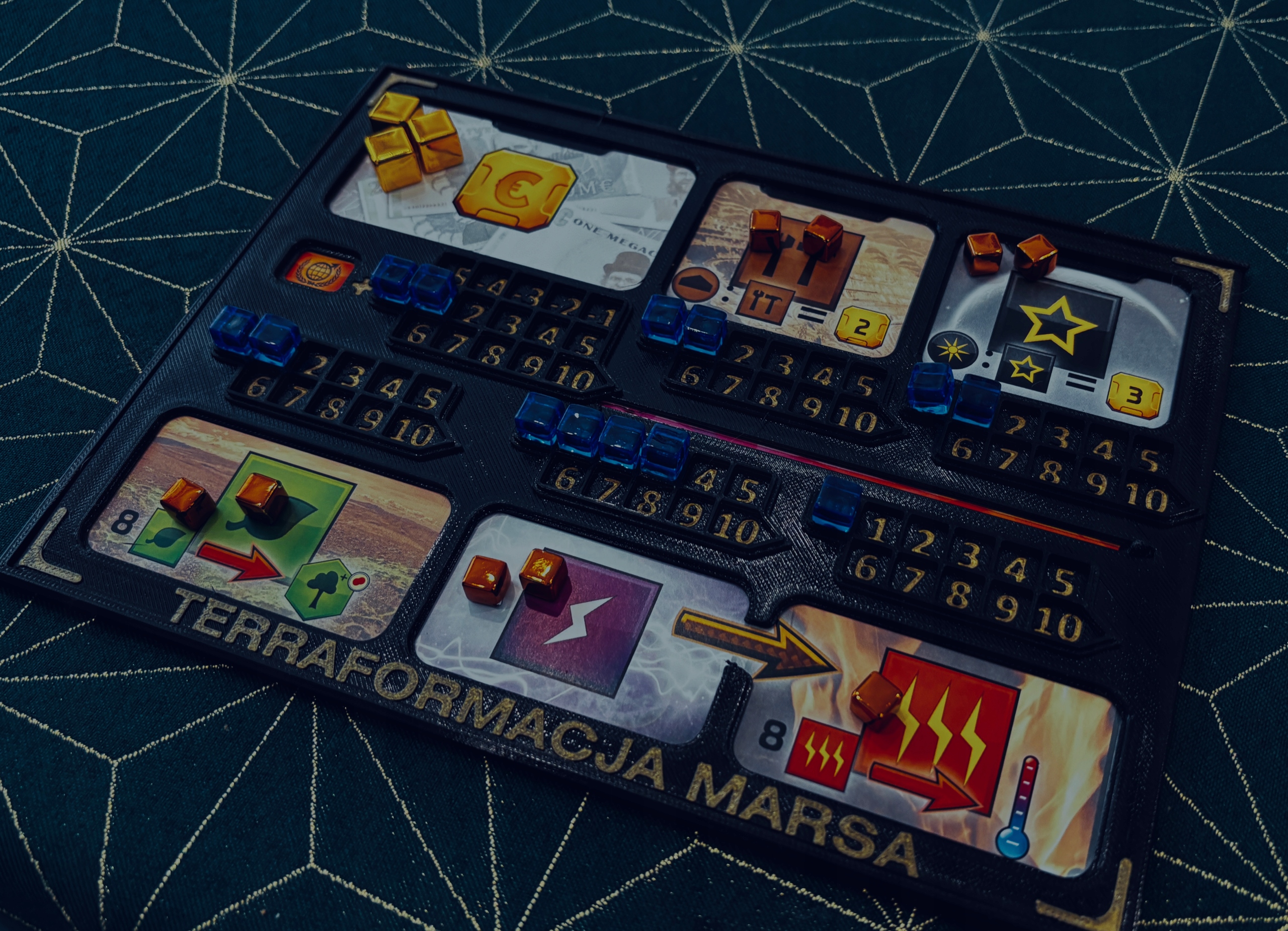 Подбайте про порядок і комфорт під час гри в одну з найпопулярніших настільних ігор - Terraforming Mars! Органайзер розроблено так, що всі маркери та ресурси завжди на місці, а дошка гравця залишається розбірливою та стабільною протягом усієї гри.