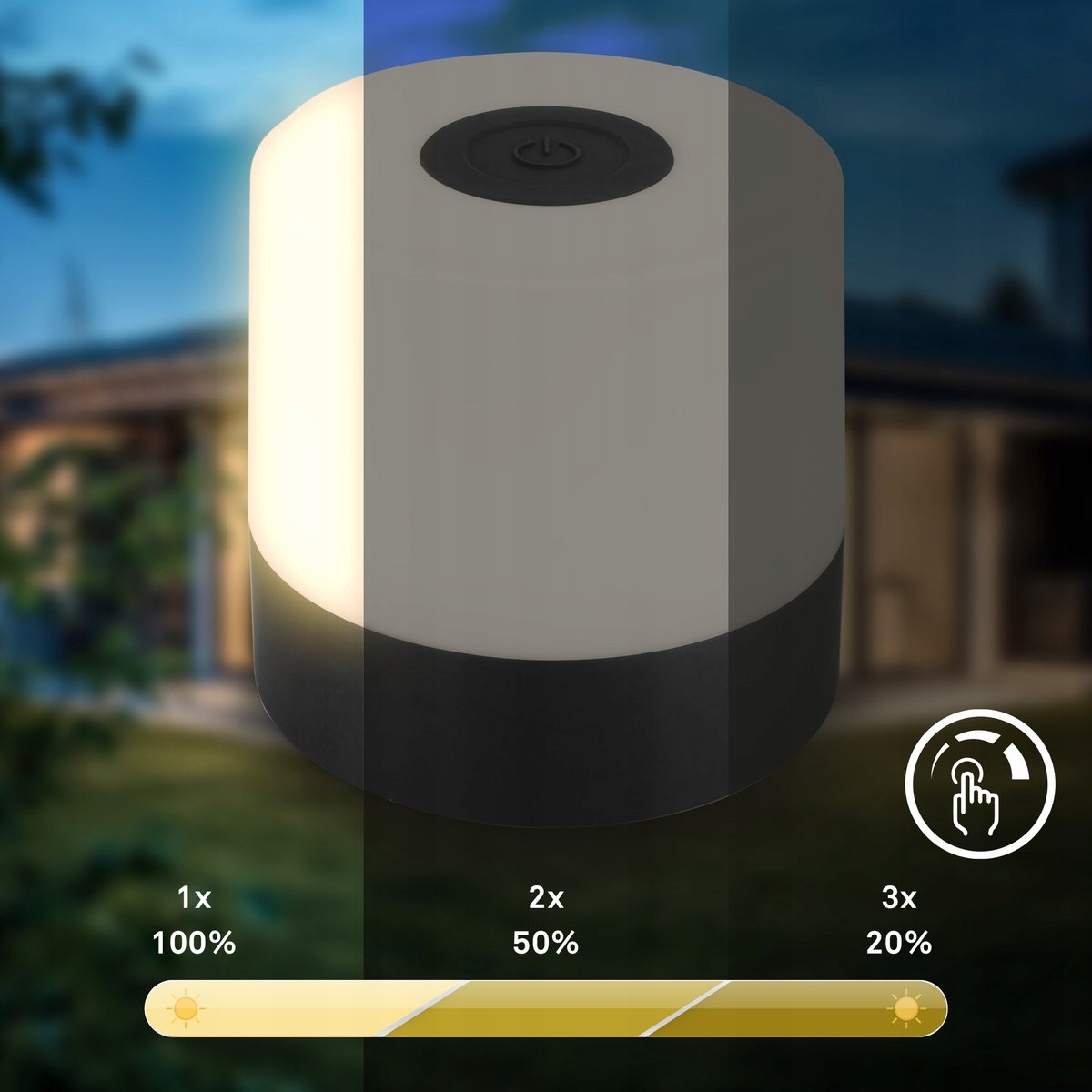 - Три -точковий дотик Діммер дозволяє плавно змінити інтенсивність освітлення, що робить лампу ідеальною як нічна лампа, декоративне освітлення столу або тонке світло в саду.