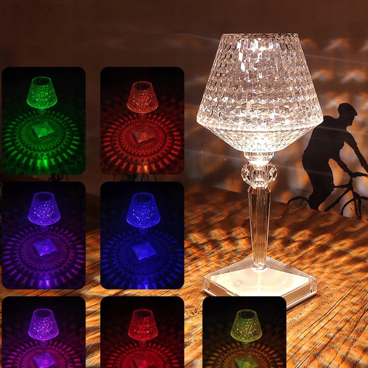 НАСТІЛЬНА ЛАМПА АКРИЛ CRYSTAL DIAMOND LED RGB НІЧНИК 16 КОЛЬОРІВ