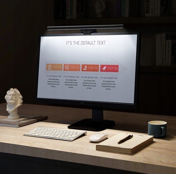 Повинна бути очевидна турбота про оптимальне освітлення на робочому місці. Саму лампу потрібно підбирати не тільки за яскравістю освітлення, але і за кольором світла. Унікальний дизайн ручки та поворотна форма були прийняті на основі вимог до освітлення робочого місця. Завдяки цьому ми отримаємо достатнє рівномірне освітлення монітора та столу.