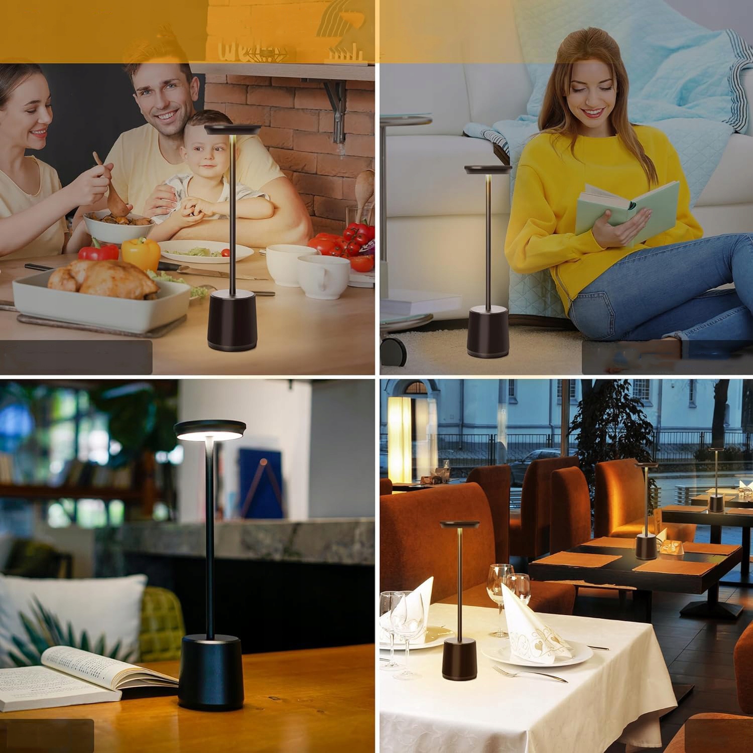 - 🌟 - 【Створіть романтичну та теплу атмосферу】:Ця акумуляторна світлодіодна настільна лампа легко Покращте та прикрасьте Вашу кімнату модним та сучасним стилем, класичними кольорами та зрозумілим та простим дизайном. Бездротова конструкція ідеально підходить для вашого обіднього столу. Його також можна використовувати в спальнях, кабінетах, ресторанах, барах, відкритих кемпінгах, кафе, балконах для читання, нічних лампах, садових пікніках та інших видах діяльності.